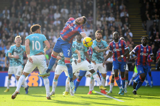 LONDON, ENGLAND - OCTOBER 29: Joel Ward of Crystal Palace misses a chance during the Premier League match between Crystal Palace and Southampton FC at Selhurst Park on October 29, 2022 in London, England. (Photo by Alex Davidson/Getty Images)