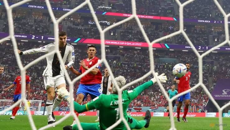 เยอรมนี แชมป์โลก 4 สมัยตกอยู่ในสถานการณ์อันยากลำบาก หลังลงเล่นไป 2 นัดมีแค่คะแนนเดียว ส่อเค้าเก็บกระเป๋ากลับบ้านเกิด ทั้งนี้พวกเขามีเงื่อนไขที่จะต้องดวลกับ คอสตา ริก้า คือเก็บสามแต้มแล้วลุ้นให้สเปนคว้าชัยต่อญี่ปุ่น ถึงจะผ่านเข้ารอบ ฟุตบอลโลก 2022 ซึ่งผลเกมนี้ปรากฏว่า อินทรีเหล็ก เอาชนะ กล้วยหอม 4-2 แต่ก็ไม่เพียงพอ ทำให้ทีมชาติเยอรมันตกรอบแบ่งกลุ่ม โดยทีมเมืองเบียร์ได้ประตูจาก แซร์จ กนาบรี้ นาทีที่ 10, ไค ฮาแวร์ตซ์ นาทีที่ 73,85 และ นิคลาส ฟัลล์ครูก นาทีที่ 89 ส่วนทางฝั่งทีมชาติคอสตา ริก้า ได้จาก เยลต์ซิน ทาเยด้า นาทีที่ 58 และ การทำโอนโกลของ มานูเอล นอยเออร์ นาทีที่ 70