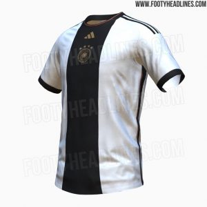 อีกเพียงเดือนเดียว ฟุตบอลโลก 2022 และชุดใหม่สำหรับทีมที่เข้าร่วมจะถูกปล่อยออกมาทีละชุด แล้วอินทรีเหล็กเยอรมันจากบาเยิร์นมิวนิคจะสวมชุดอะไร? ชุดนี้ยังไม่เปิดตัวอย่างเป็นทางการ แต่ Footy Headlines ซึ่งมักจะน่าเชื่อถือมากกับการปล่อยชุดต่างๆออกมา นี่คือลักษณะที่ฝ่ายของ ฮันซี่ ฟลิค จะเหมาะกับการแข่งขันฟุตบอลโลกที่กำลังจะมาถึงเกิดขึ้น ฐานของเสื้อเป็นสีขาวตามปกติ แต่มีแถบสีดำหนาขนาดใหญ่ที่แยกเสื้อจากบนลงล่าง โลโก้ Adidas และตรา DFB...